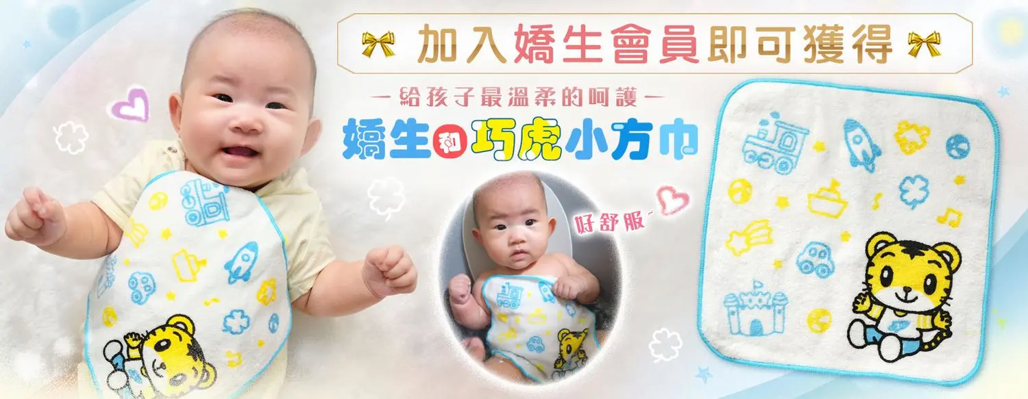 想要免費獲得「巧虎小方巾」嗎?即日起加入嬌生嬰兒官網會員,並填寫完整資料,不但能搶先獲知嬌生嬰兒第一手的好康情報,更能獲得新登場的「巧虎小方巾」喔!